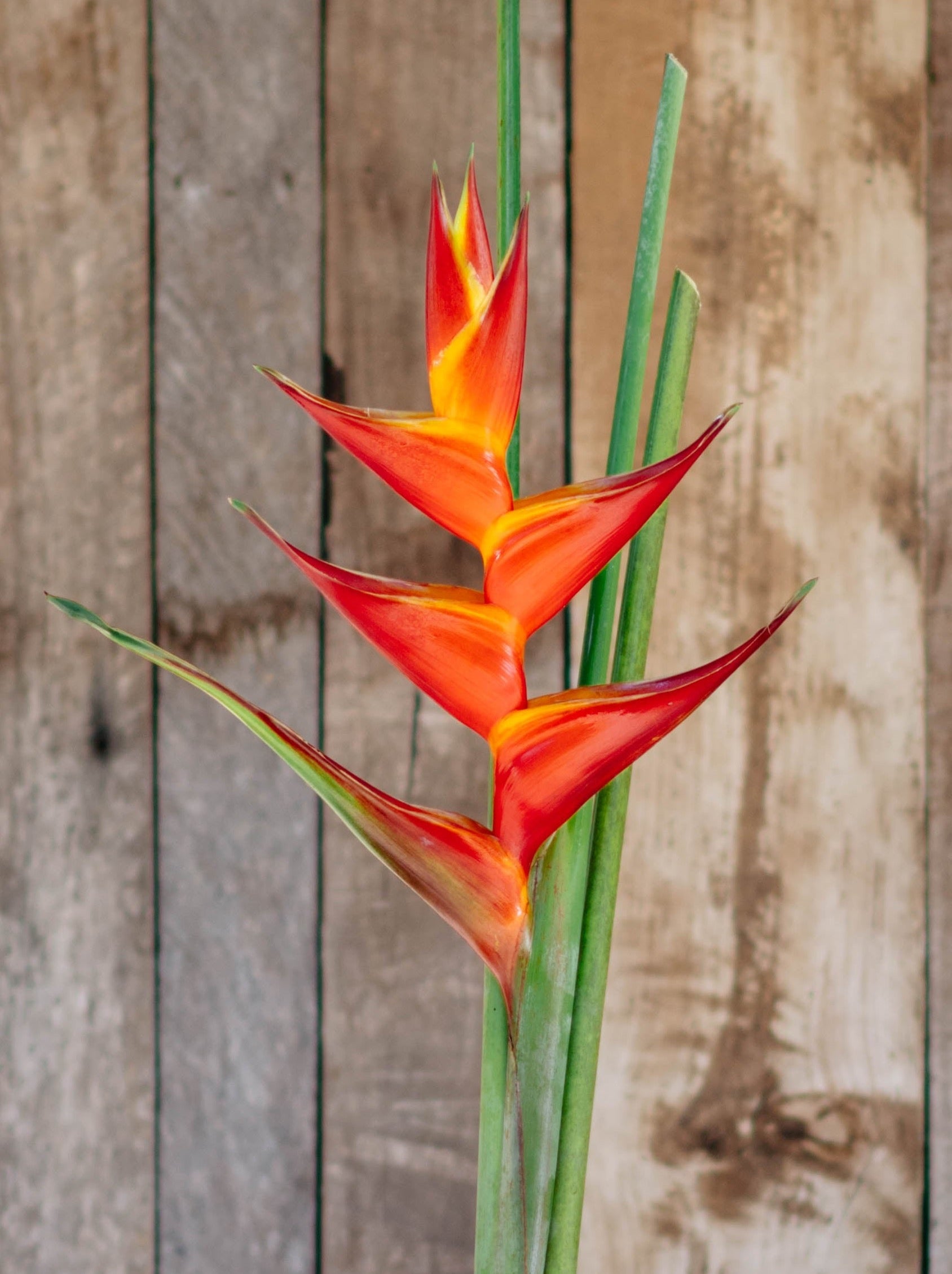 A masculine red, this strong bold flower that grounds its presence with its height and strength. Deep red, leading elegantly into yellow tips, like sun kissed highlights. This flower is long lasting. Sold as a box of 3 Rhizomes.